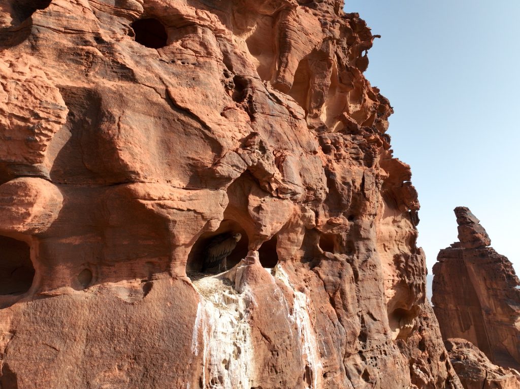 Andrew Zaloumis, CEO at Prince Mohammed bin Salman Royal Reserve Development Authority, stated: “The endangered Griffon vulture is an uncommon breeding resident in Saudi Arabia. Using drones four active nests with adults incubating eggs and raising chicks have been discovered by Reserve scientists and are being closely monitored”